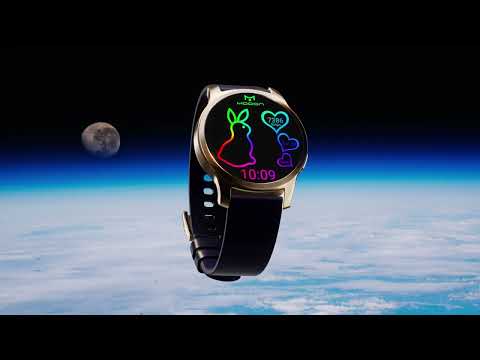 Multicolored watch face with bunny, digital clock, date, step counter for Wear OS.