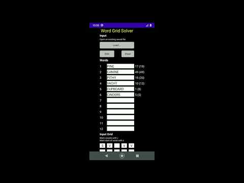 Word Grid Solver решава пъзели с решетка с думи с решетка 5 x 5, където позициите на гласните и началните букви на думите са известни.